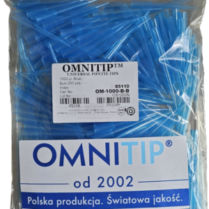 85110 Końcówki OMNITIP® OM-1000-B-B do pipet, poj. 100-1000 µl, dł. 83 mm, niebieskie, pakowane w worku. (Kopia)
